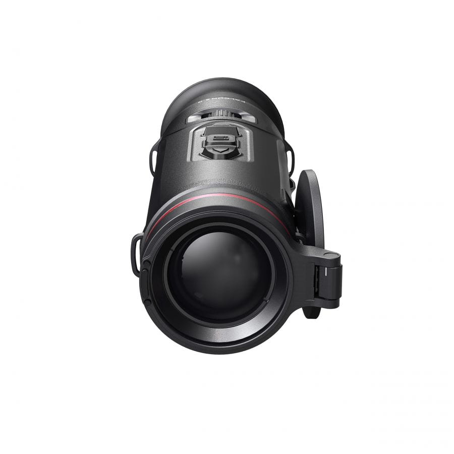 Urządzenie zostało wyposażone w stałe powiększenie optyczne 1,9x, które w połączeniu z aż 8-krotnym zoomem cyfrowym gwarantuje nam możliwość precyzyjnej identyfikacji celu na dużych dystansach. Cztery stopnie powiększenia pozwolą nam na idealne dostosowanie do dystansu dzielącego nas od zwierzyny. Do naszej dyspozycji oddane zostały pięć palet kolorystycznych wyświetlanego obrazu (Black Hot, White Hot, Red Hot, Red Monochrome, Green Monochrome, Fusion). Dzięki czemu możemy dostosować go do naszych preferencji. Pokrętło regulacji ogniskowania umiejscowione z tyłu urządzenia pozwoli nam natomiast na idealne dopasowanie ostrości obrazu do dystansów przy użyciu jednej ręki.