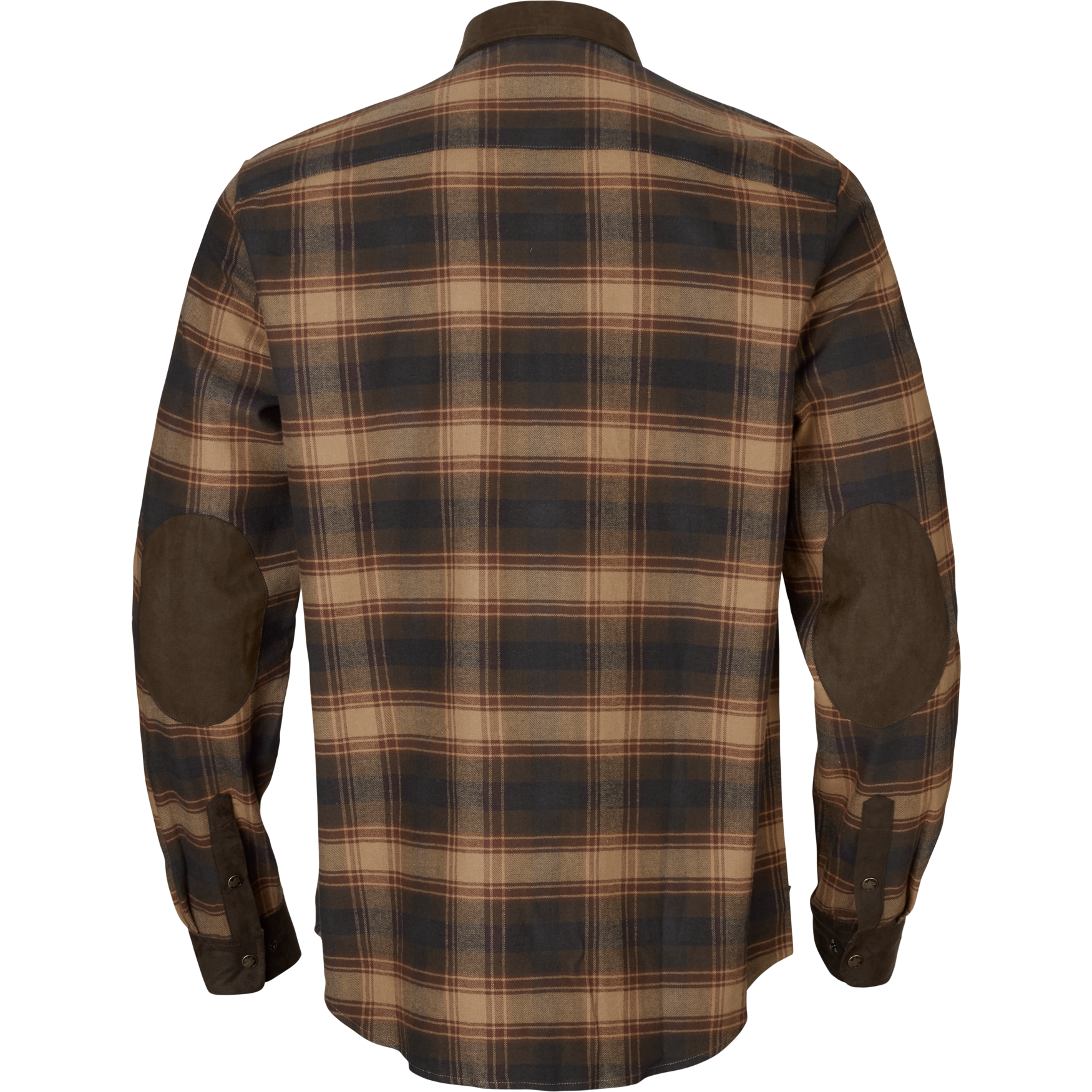 W newralgicznych miejscach – na kołnierzu, łokciach i mankietach – zastosowano imitację zamszu, która zwiększa odporność na przetarcia i dodaje eleganckiego charakteru. To rozwiązanie nie tylko wzmacnia konstrukcję koszuli, ale także podkreśla jej klasyczny, myśliwski styl.