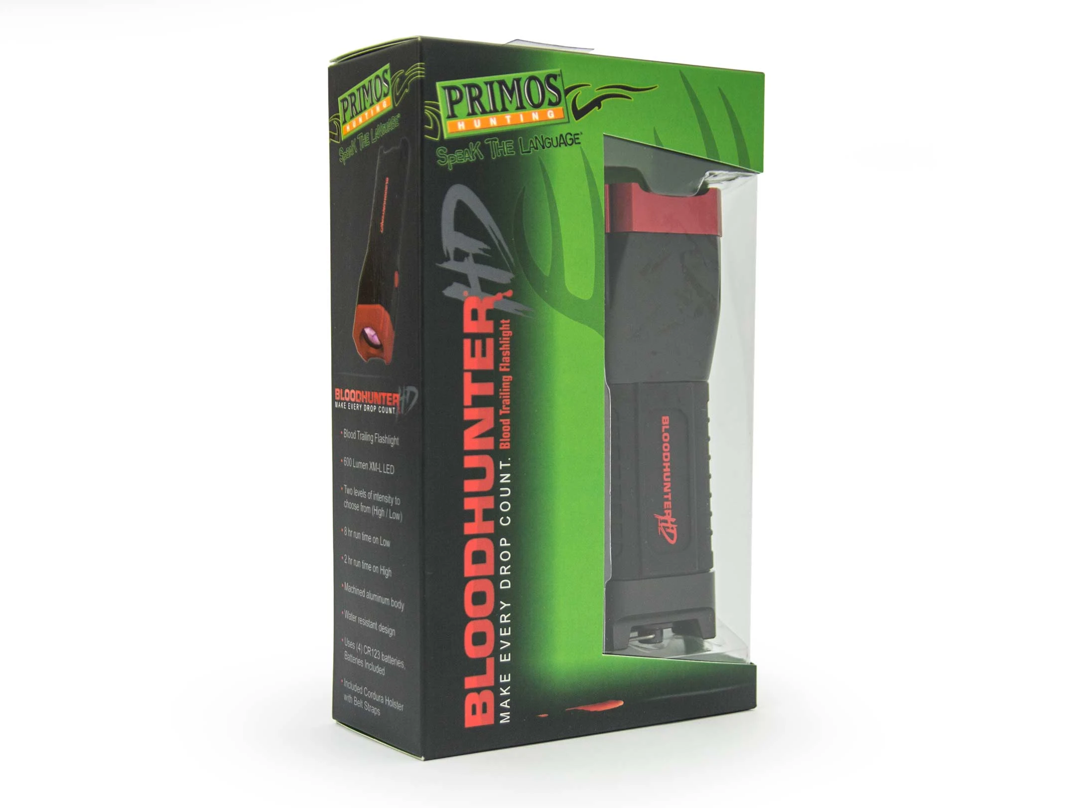 Latarka stworzona by poszukiwanie postrzałka po farbie stało się dużo prostsze. Wyposażona w specjalny filtr krew staje się bardziej widoczna, a reszta kolorów stłumiona. Taka dysproporcja w barwach pozwala na szybsze i bezpieczniejsze poszukiwania. Primos Bloodhunter HD wykorzystuje własną technologię HD i używa niestandardowego filtru optycznego.