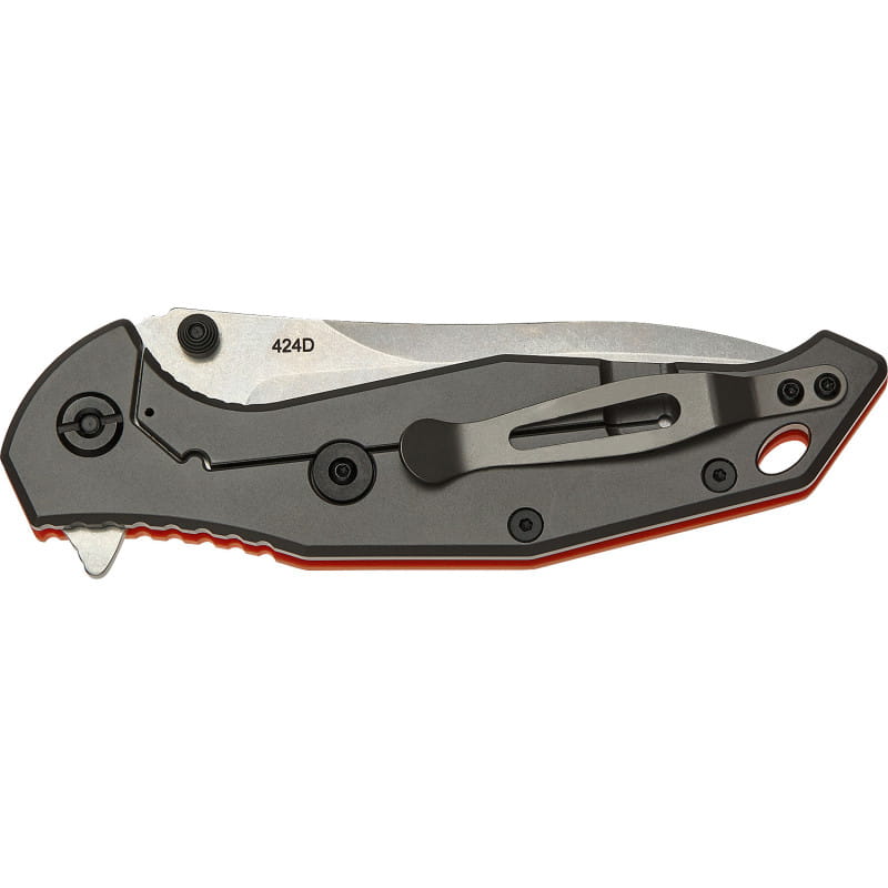Rękojeść noża wykonana została z lekkiego, a jednocześnie niezwykle wytrzymałego materiału G-10. Zapewnia on pewny chwyt nawet w trudnych warunkach – np. w rękawicach lub przy wilgotnych dłoniach. Dzięki specjalnemu ryflowaniu na grzbiecie rękojeści, flipperze i części blokującej, nóż zapewnia dodatkową kontrolę i bezpieczeństwo, nawet podczas intensywnego użytkowania. Dodatkowo, klips do kieszeni umożliwia wygodne przenoszenie noża przy sobie, a otwór na smycz zapewnia dodatkową opcję personalizacji, umożliwiając przypięcie noża do ekwipunku.