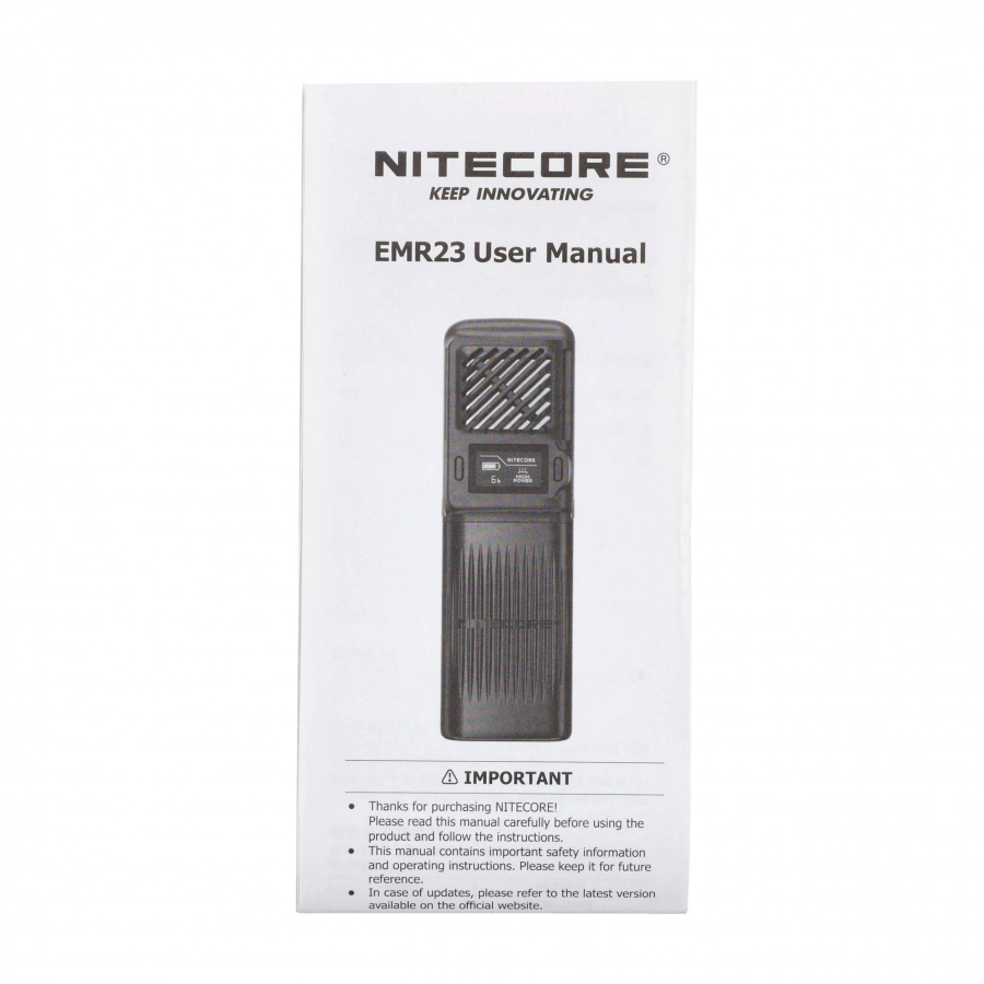 - Zestaw zawiera: urządzenie Nitecore EMR23, kabel USB-C, pokrowiec ochronny na urządzenie.