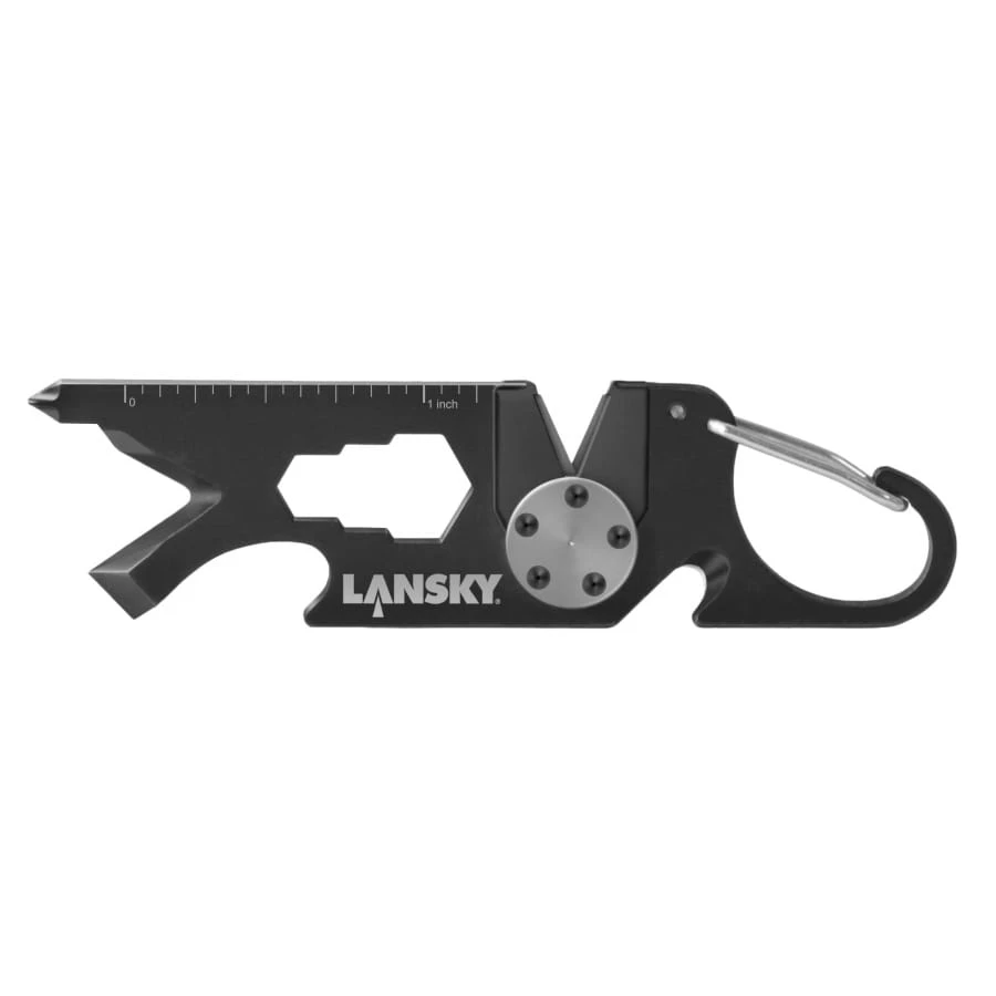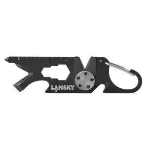Ostrzałka karabińczyk Lansky Road 1 posiada stalową konstrukcję oraz praktyczny karabinek, który pozwala na mocowanie np. do plecaka. Powierzchnie ścierne wykonano z węglika wolframu o zgrubnej gradacji. Ustawiono je pod stałym kątem ok. 22,5° (na stronę). Węglik zabiera stal bardzo agresywnie więc warto pamiętać aby delikatnie przeciągać i nie dociskać noża. Ostrzałka posiada ostrzę/hak ratowniczy np. do przecięcia pasu samochodowego lub odzieży. Gadżet został także wyposażony w śrubokręt płaski, krzyżakowy, otwieracz do butelek oraz zestaw kluczy sześciokątnych.