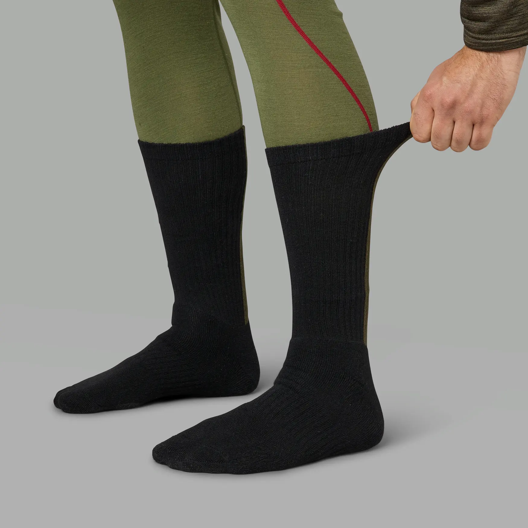 Elastyczna konstrukcja sprawia, że skarpety dopasowują się do różnych typów obuwia – zarówno myśliwskiego, jak i codziennego.